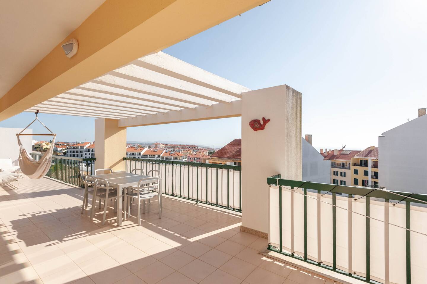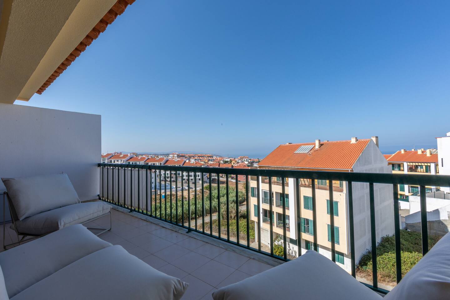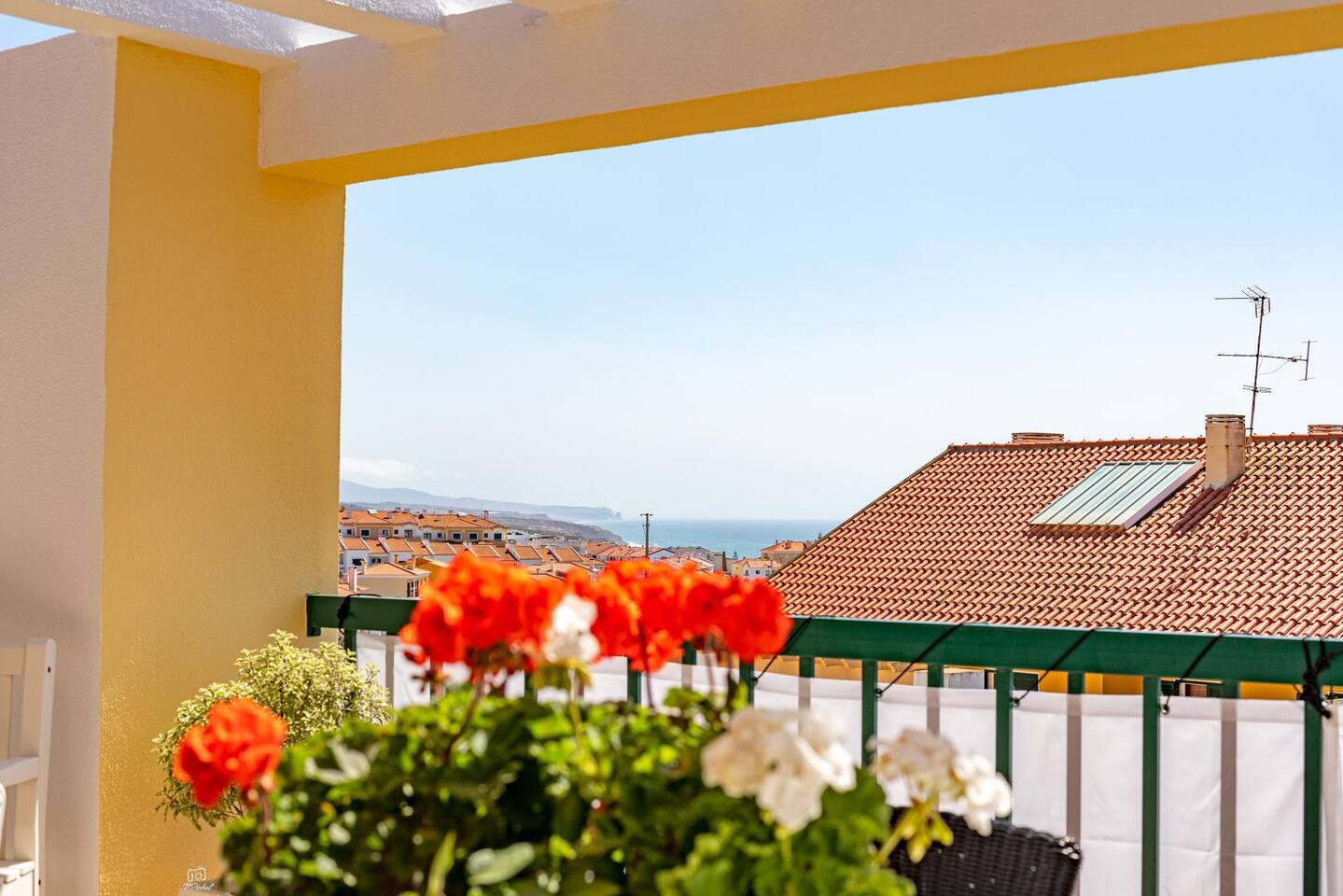 🌊 Ocean-View Penthouse with Family-Friendly Comforts - 165 sq meters / 1,775 sq ft of indoor living space + wraparound balcony with stunning ocean views - 3 bedrooms: two with king-sized beds (master + second), plus a third room that can be set up as an office or guest room with a sofa bed - A/C split units in every room (heating + cooling) for year-round comfort - Real full-size crib with quality baby mattress, high chair, and baby gear (not just a pack-and-play!) - Dedicated home office with a standing desk and 224 Mbps Wi-Fi – ideal for remote work - Chef-grade kitchen fully stocked for home cooking - Spacious dining patio for sunset dinners with an ocean view - 50” Samsung Smart TV – log in with your own Netflix or streaming accounts - Blackout shutters in every bedroom for restful sleep - Private elevator access, top-floor unit, and no shared walls = total privacy - Washer, parking, and all essentials included Just 15 minutes on foot or a quick drive to downtown Ericeira and iconic surf beaches