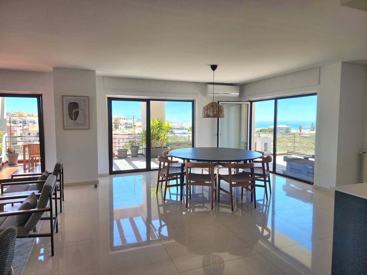 Welcome to our breathtaking panoramic ocean view penthouse in the picturesque town of Ericeira! This stunning retreat offers a seamless blend of modern comfort, breathtaking vistas, and a prime location just 15 minutes away by foot from the historic downtown and the beach. The living and dining area, in particular, boast unobstructed views of the vast ocean, allowing you to immerse yourself in the beauty of the Atlantic from the comfort of your own home.